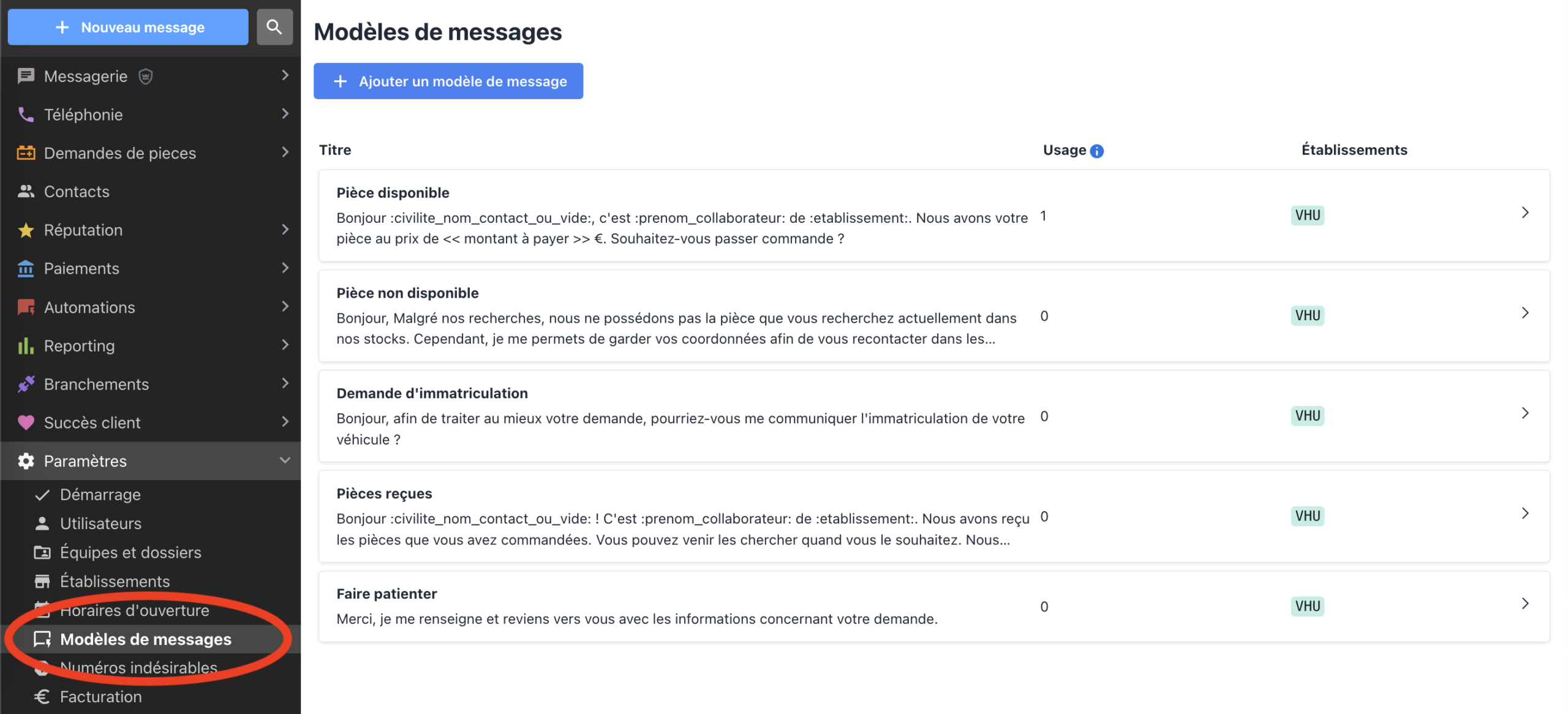 – Secteur VHU : Nous avons ajouté 5 nouveaux modèles de messages spécifiquement conçus pour répondre aux besoins de votre métier.