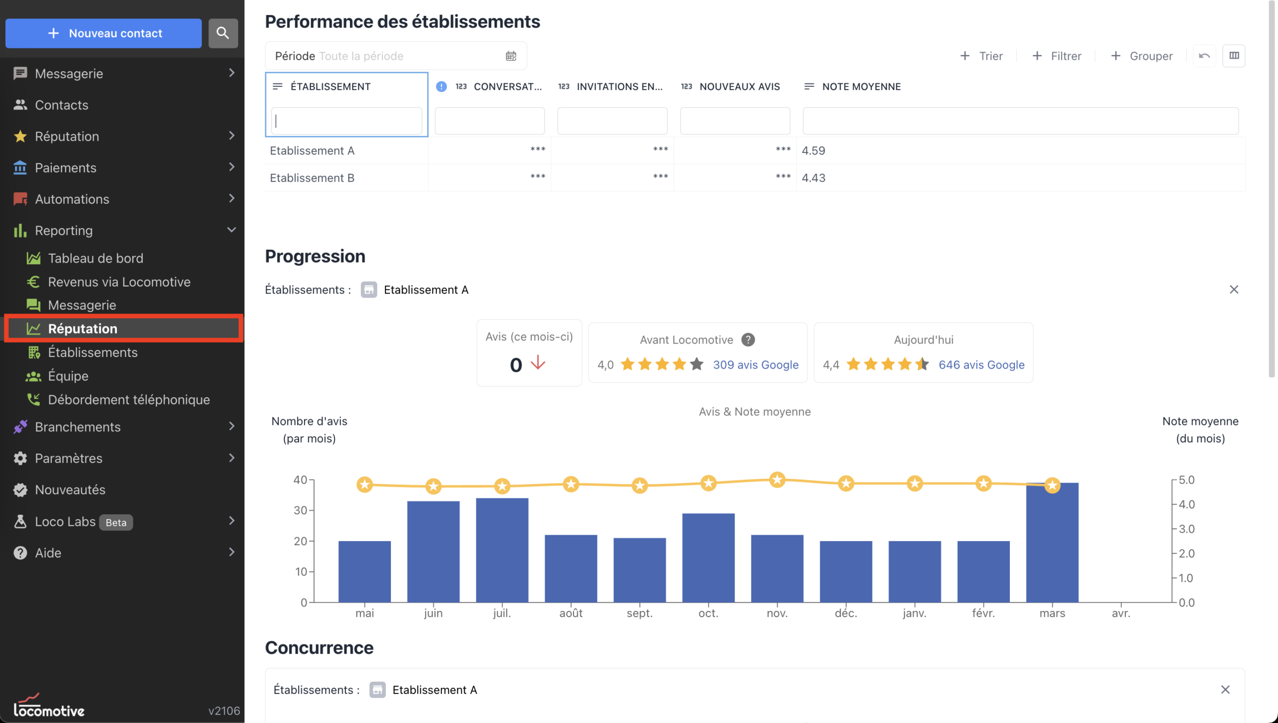 ⭐ Réputation & Mobile : Vos statistiques de progression et vos établissements réunis sur une seule page, accessible sur mobile.